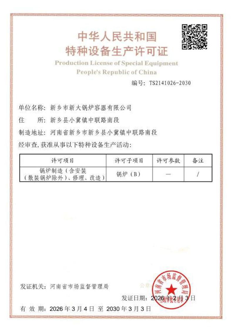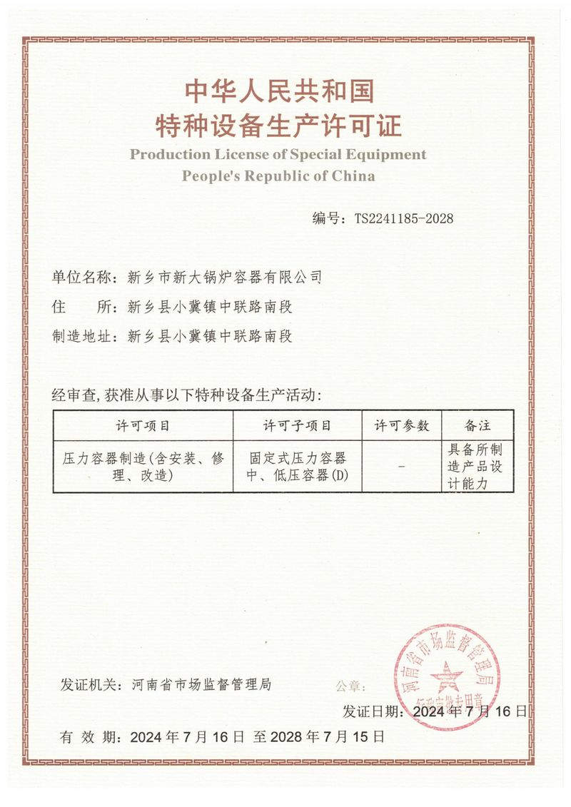 新乡市新大锅炉容器有限公司